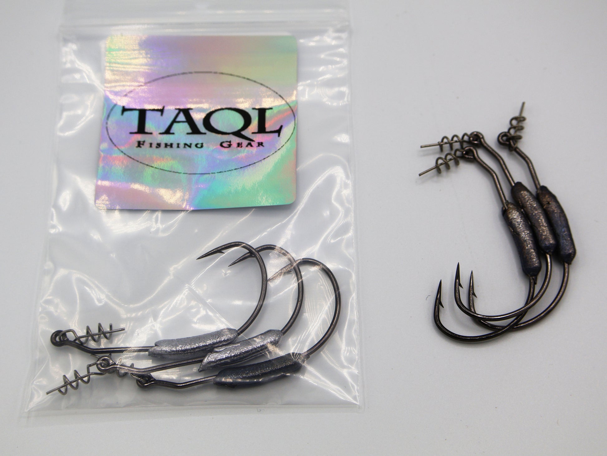 The TAQL Weighted Hooks are a game-changer for fishing weedless style lures—giving you true weedless performance without sacrificing hookup power. Equipped with a swivel pin to firmly secure your lure to the hook ensuring the most realistic action possible in the water.